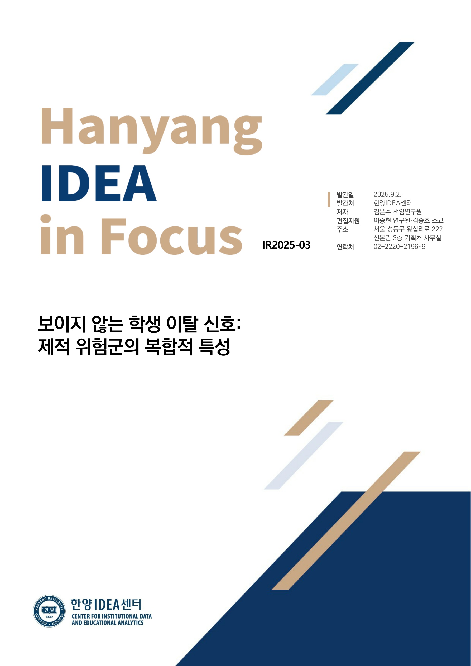 Cite this publication: 김은수. (2025. 9. 2.) 보이지 않는 학생 이탈 신호: 제적 위험군의 복합적 특성 (IR2025-03). 한양대학교, 한양IDEA센터.
